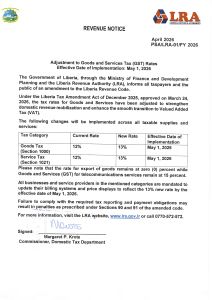 Back to Press Release Gov’t Adjusts GST Rate The Government of Liberia has announced a series of forward-looking enhancements to…